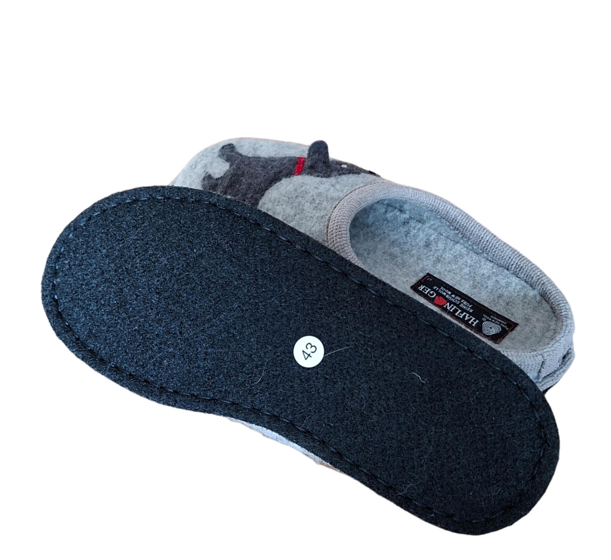 De fineste, sødeste hjemmesko med gravhunde motiv. Den perfekte julegave til hende der elsker hunde. Hjemmeskoen er i uld, så den er dejlig lun på fødderne. Størrelse 43, 44, 45