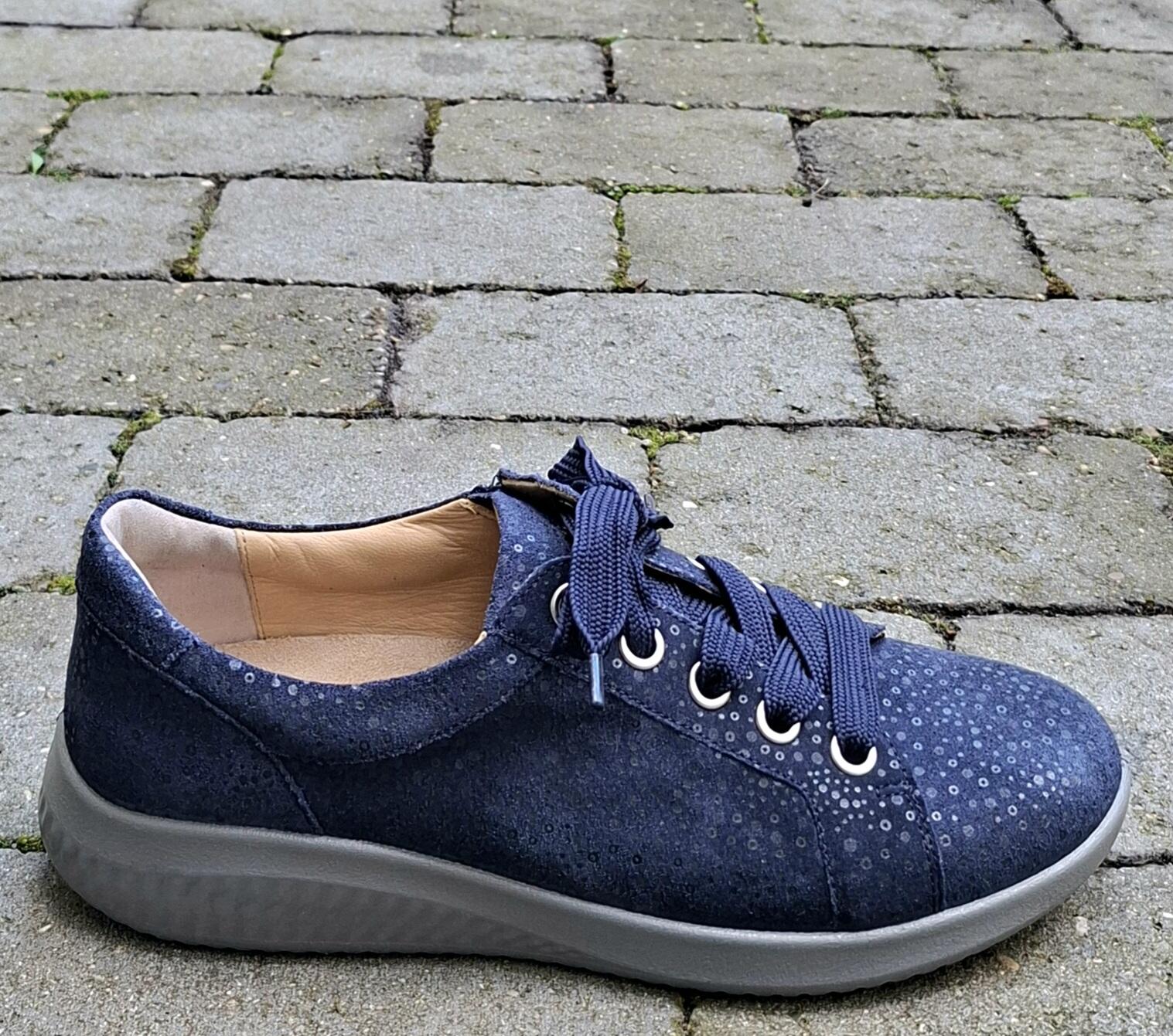Blå snøresko til dig der søger ekstra bredde på dine sko. Skoen er komfortabel med brugbar lynlås og løs indvendig sål. En hverdagssko med masser af komfort til dine fødder. Vidde K
