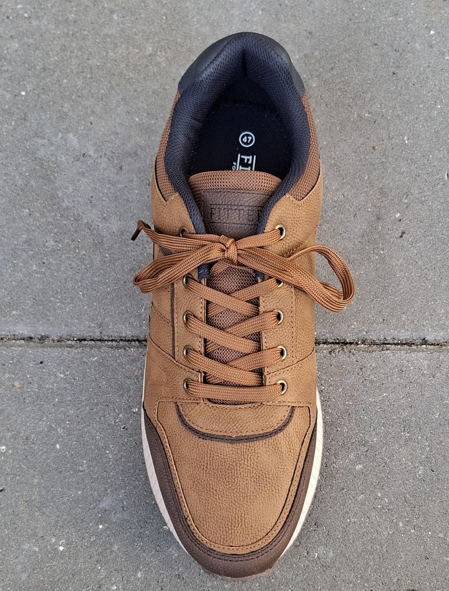 Robuste smarte sneakers til hverdagsbrug i brun og blå farve med brune snørebånd. Skoen er i kunstlæder med Fitters logo på pløsen. Medium vidde. Modellen fås også i sort/grå farve.