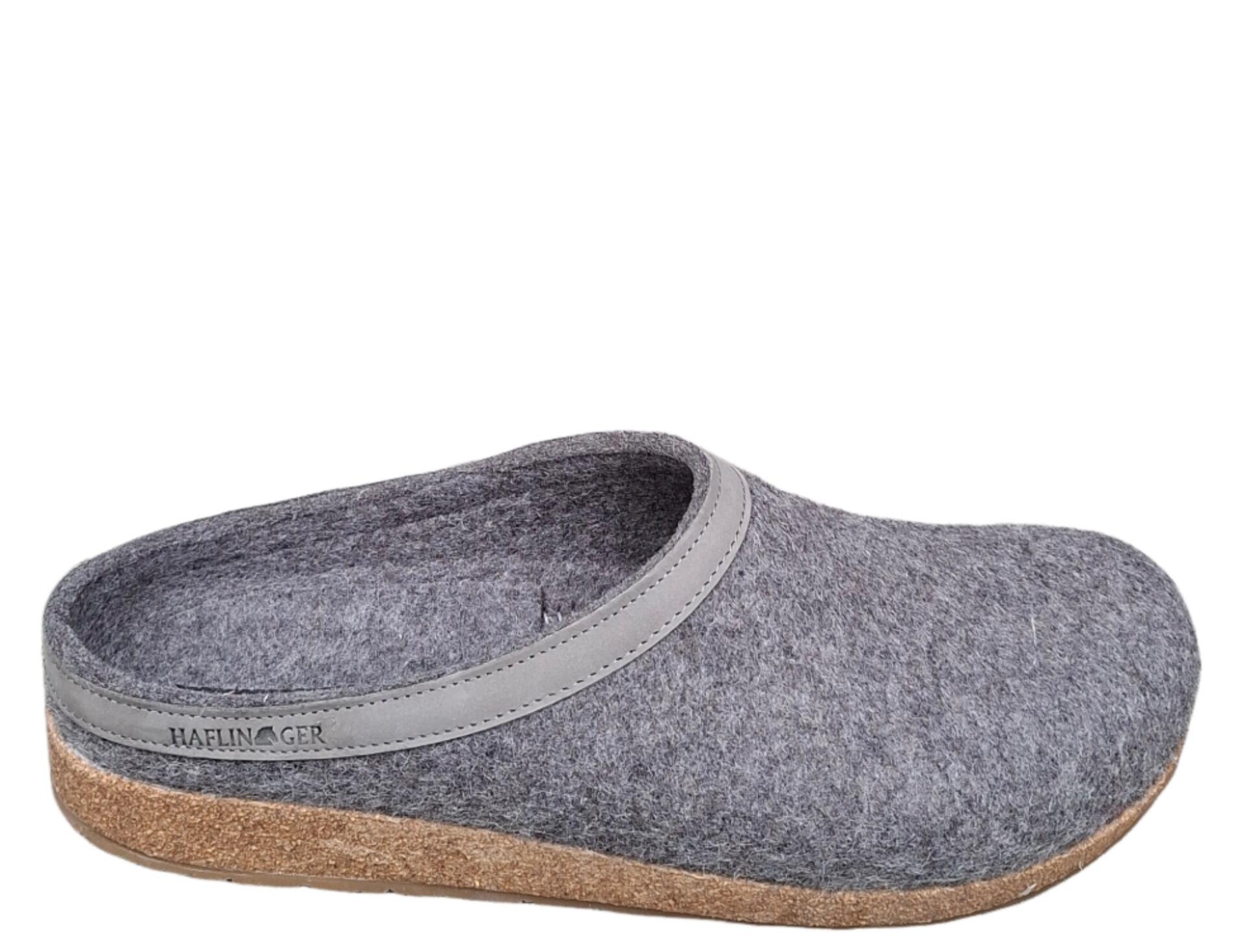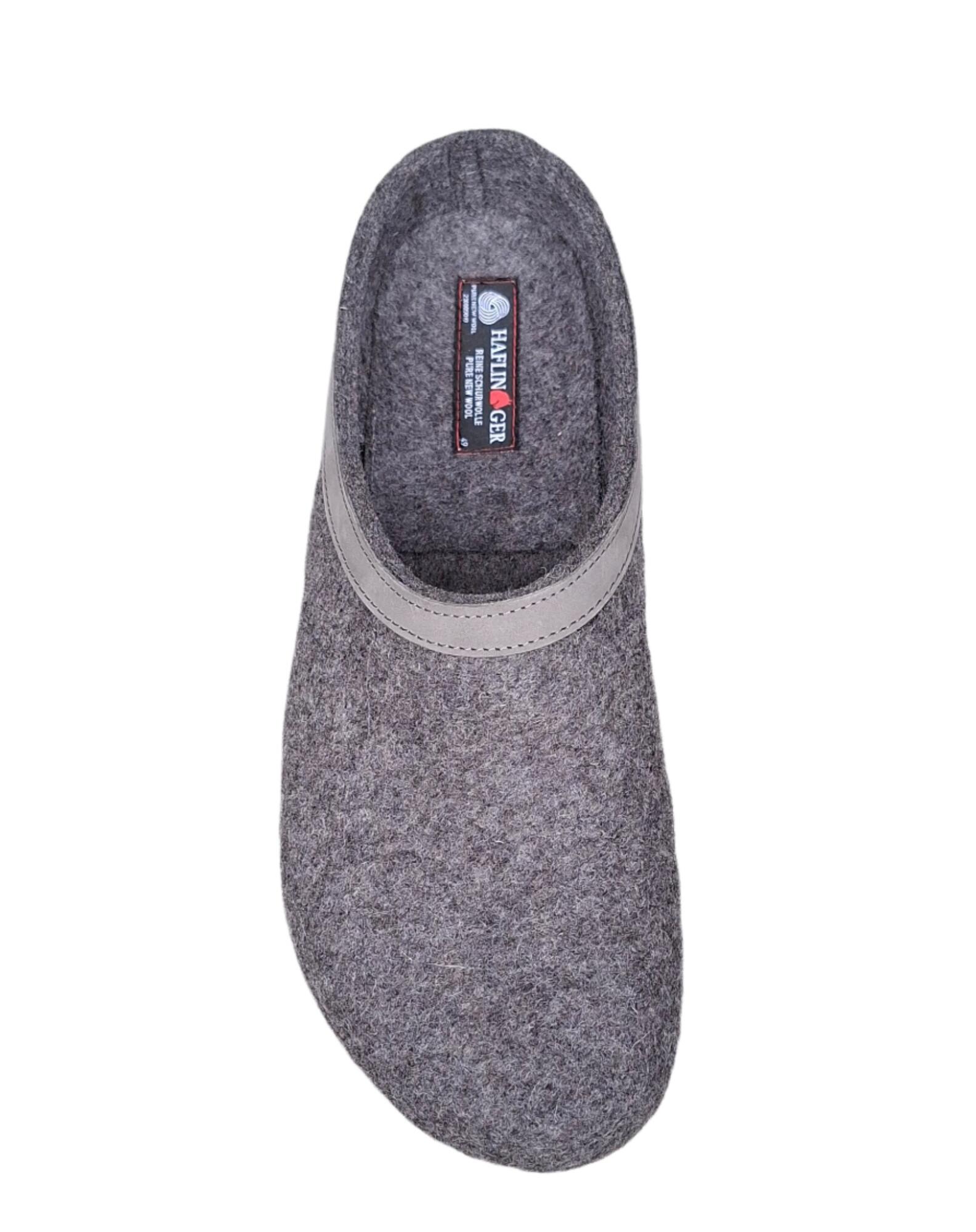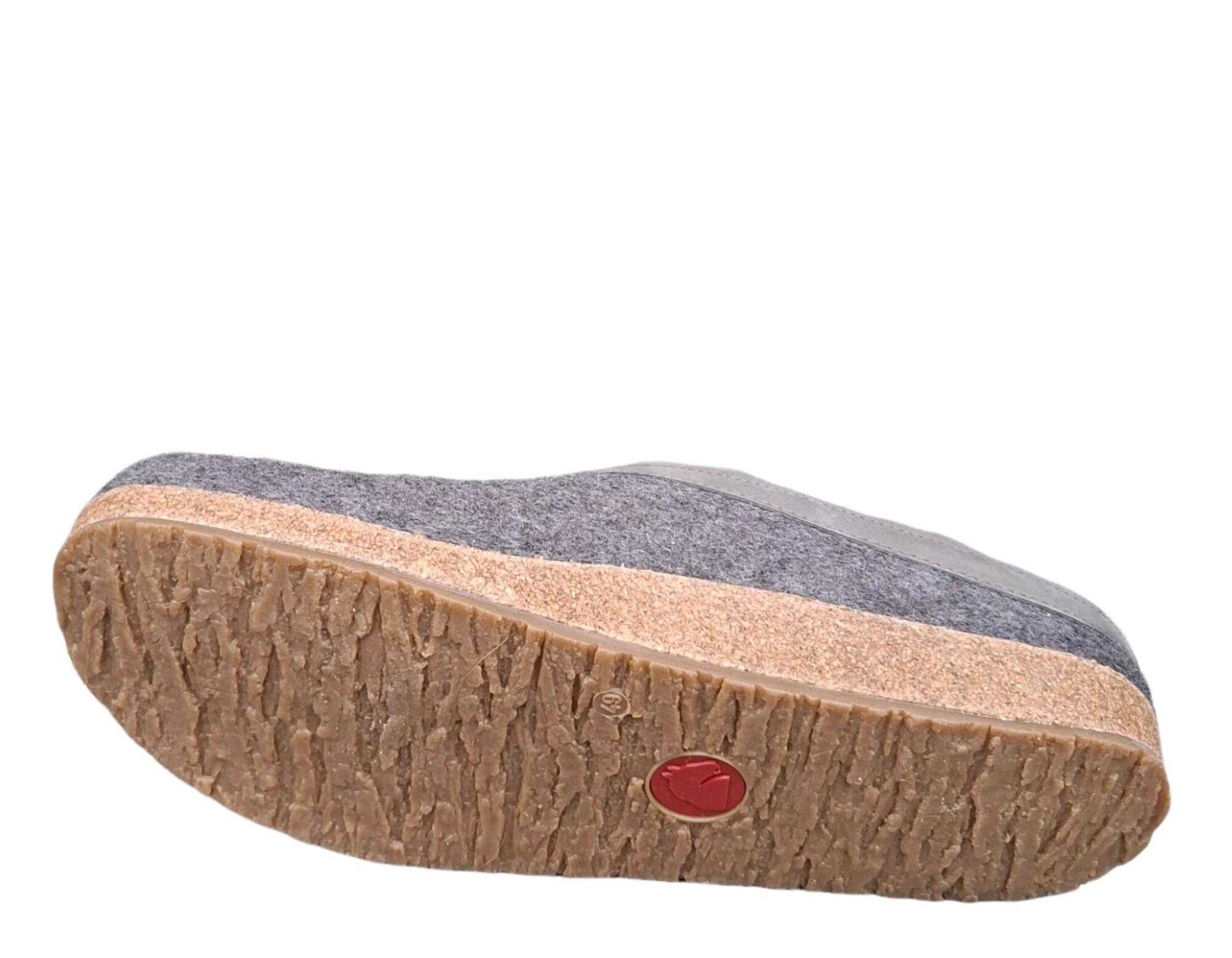Den perfekte gave til dig selv på kolde dage. Kraftig hjemmesko i lysegrå uld med ½ bagkappe og indvendig uld-sål. Der er udvendig gummisål og modellen er rummelig.