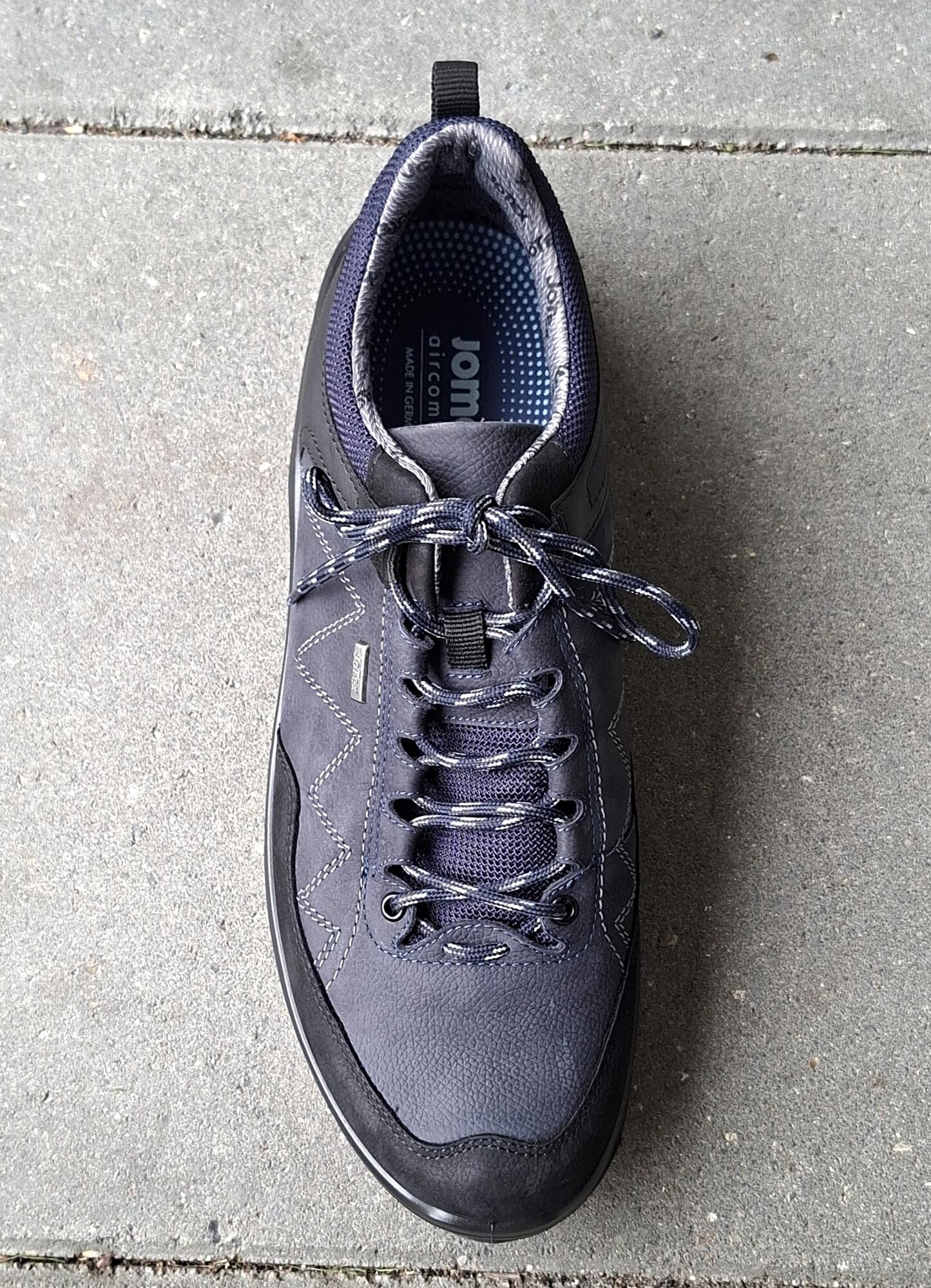Blå/ sort fritidssko i kombineret nubuck og mesh. Skoen er åndbar, vandafvisende, har løs indlægssål og indeholder masser af god komfort. Der er et godt greb i ydersålen, og så har skoen virkelig god plads i sig. Vidden hedder K, men den føles mere som en vidde M. En model mange kunder elsker år efter år.