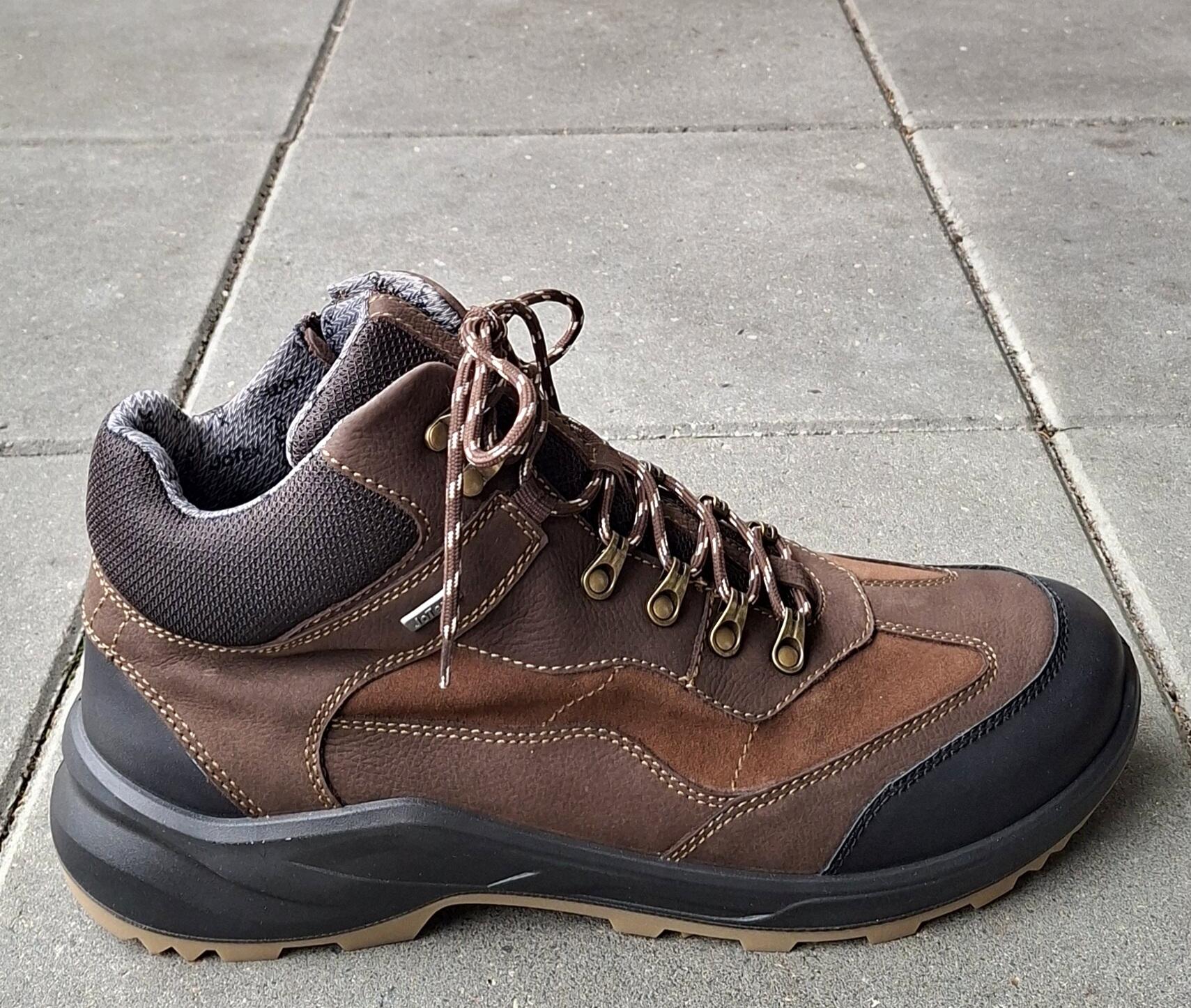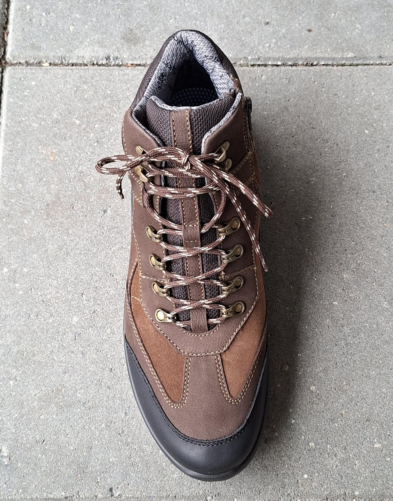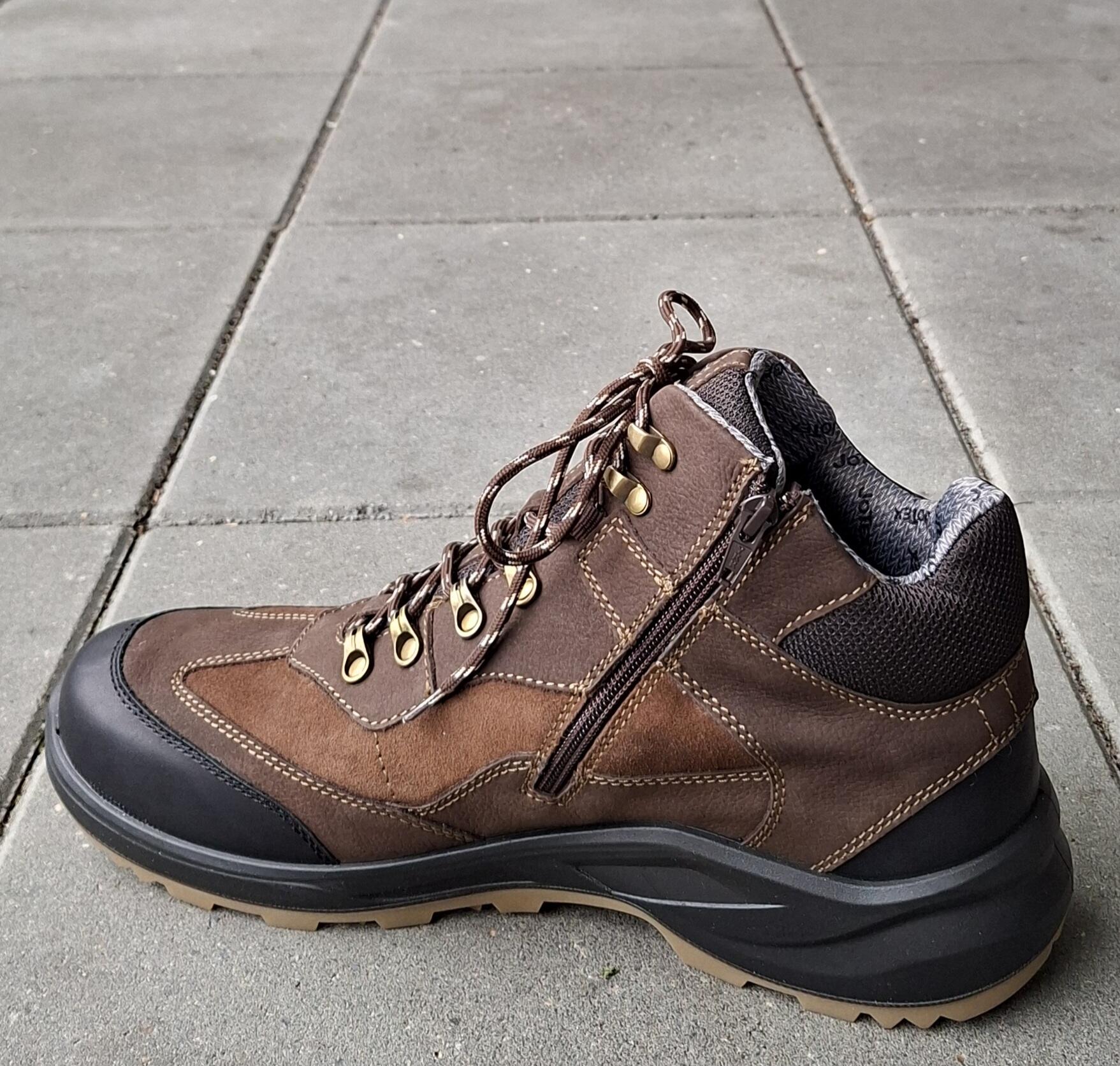 Bred og åndbar snørestøvle i brun kombineret glat læder og nubuck. Støvlen er vandafvisende og lukkes/justeres med snørebånd og lynlås. Der er en god profilsål til udendørs aktiviteter, og den indvendige sål kan erstattes med eget indlæg. Bred vidde K.