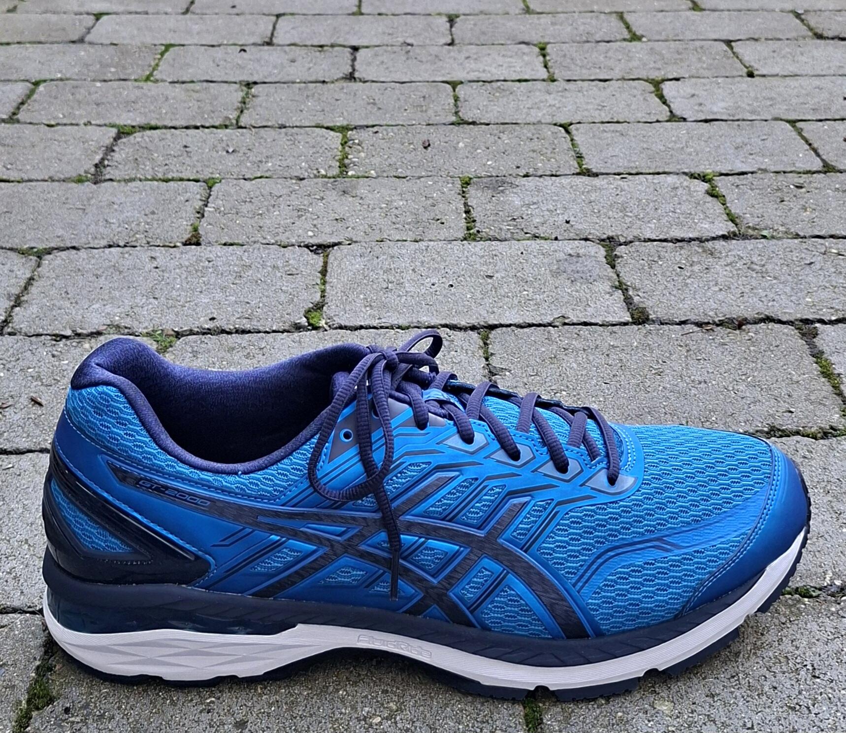 Lette blå og sorte løbesko med guidance Line teknologi i sålen. Der er løs sål og bredden er 2E.